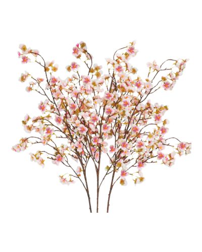 Minimalist decor with blossoming branches and a decorative porcelain cup on a woven mat.
