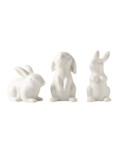 simple spring decor in an entry way with white bunny accents and neutral textures