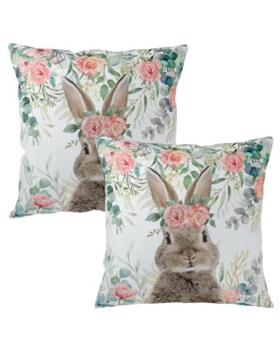 simple spring decor close-up of bunny throw pillow with soft patterned textures